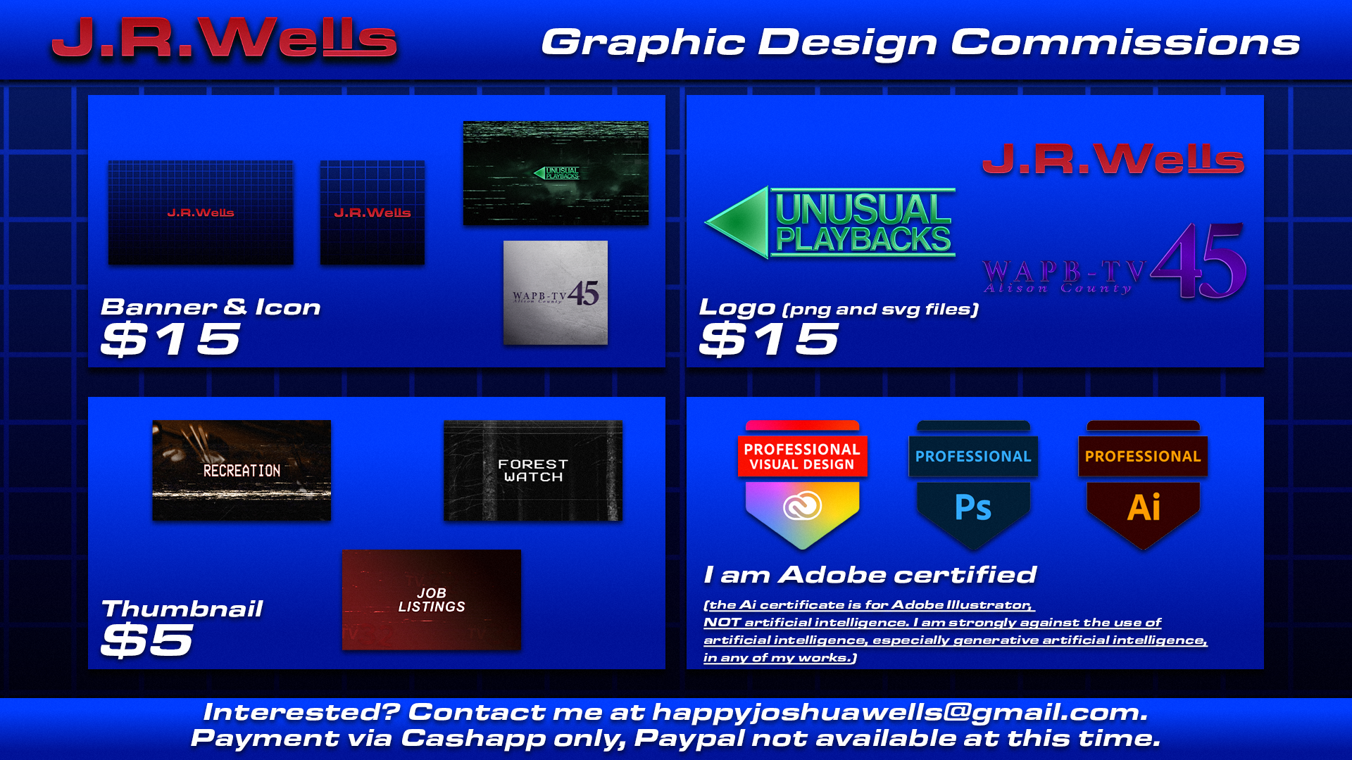 I am Adobe certified in Visual Design, Photoshop, and Adobe Illustrator.